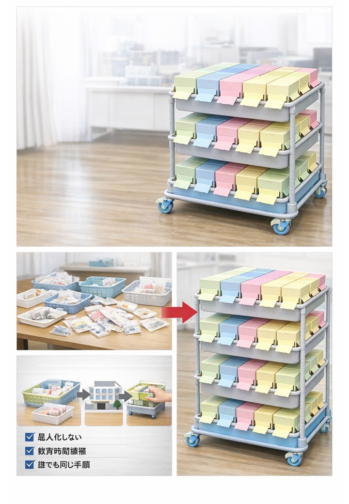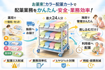 【施設長必見!】お薬束®カラー配薬カート 用法(あさ、昼、ゆう、寝る前)によって色分けしたり、ユニットごとに活用できます! 販売価格 22,000円(税込み) 会員価格 (税込み) 通常価格 (税込み) 在庫 商品コード HC0001 JANコード 4570062450557 数量 - + カートに入れる 個別送料 0円 注文数制限 1 ~ 5 ※ほかの商品とまとめてご注文されても、同梱発送ができない場合があります。商品ごとに、別々に届くこともありますので、ご了承ください。 ツイートする シェアする お薬束 2026年03月 日 月 火 水 木 金 土 1 2 3 4 5 6 7 8 9 10 11 12 13 14 15 16 17 18 19 20 21 22 23 24 25 26 27 28 29 30 31 2026年04月 日 月 火 水 木 金 土 1 2 3 4 5 6 7 8 9 10 11 12 13 14 15 16 17 18 19 20 21 22 23 24 25 26 27 28 29 30 配送休業日 ショッピングガイド 特定商取引法に基づく表記 個人情報保護方針 送料について 会員規約 お問い合わせ